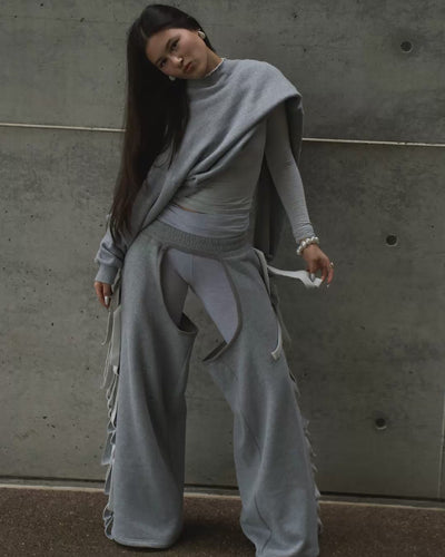 Essential Fringe Wide-Leg Sweatpants — Pink